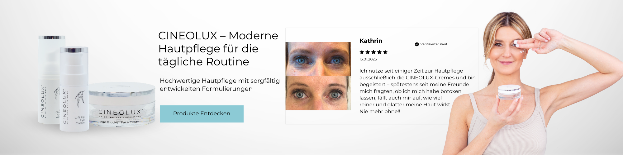 CINEOLUX steht für hochwertige Hautpflege mit sorgfältig entwickelten Formulierungen und klaren, modernen Texturen.